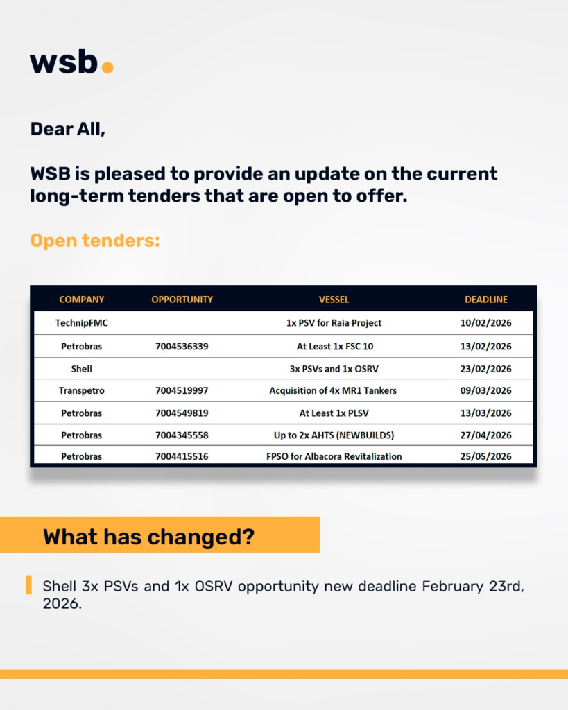 – Shell 3x PSVs and 1x OSRV opportunity new deadline February 23rd, 2026.