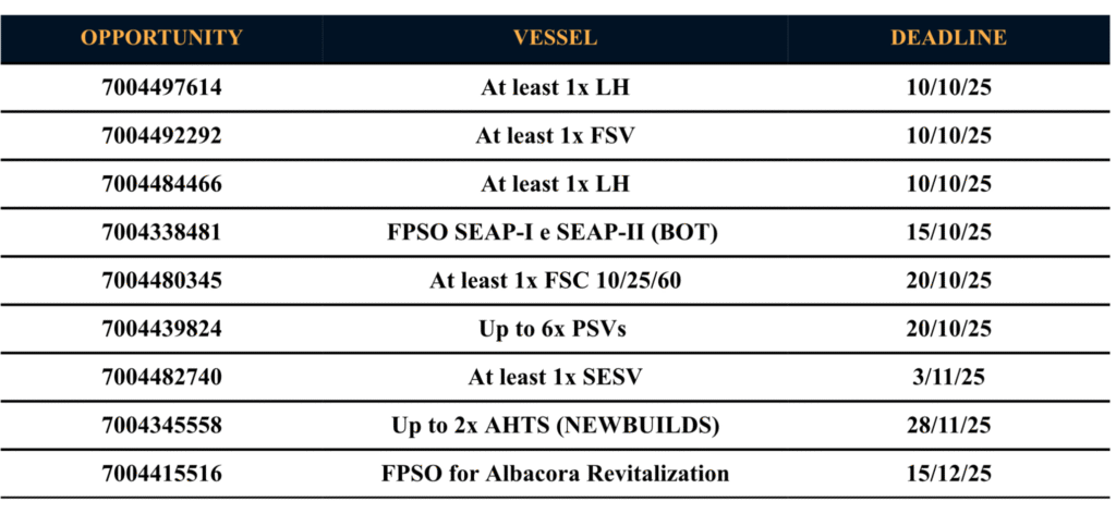 Petrobras up to 6x PSVs Opportunity 7004439824 new deadline October 20th, 2025.